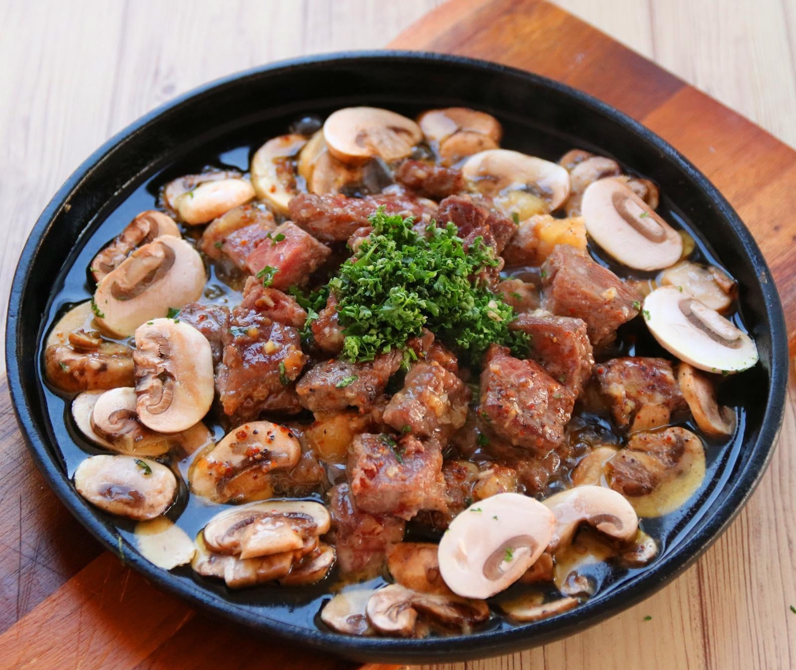 「いきなりステーキ肉のアヒージョ」のレシピをお届け♬